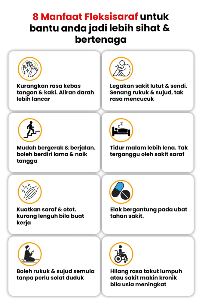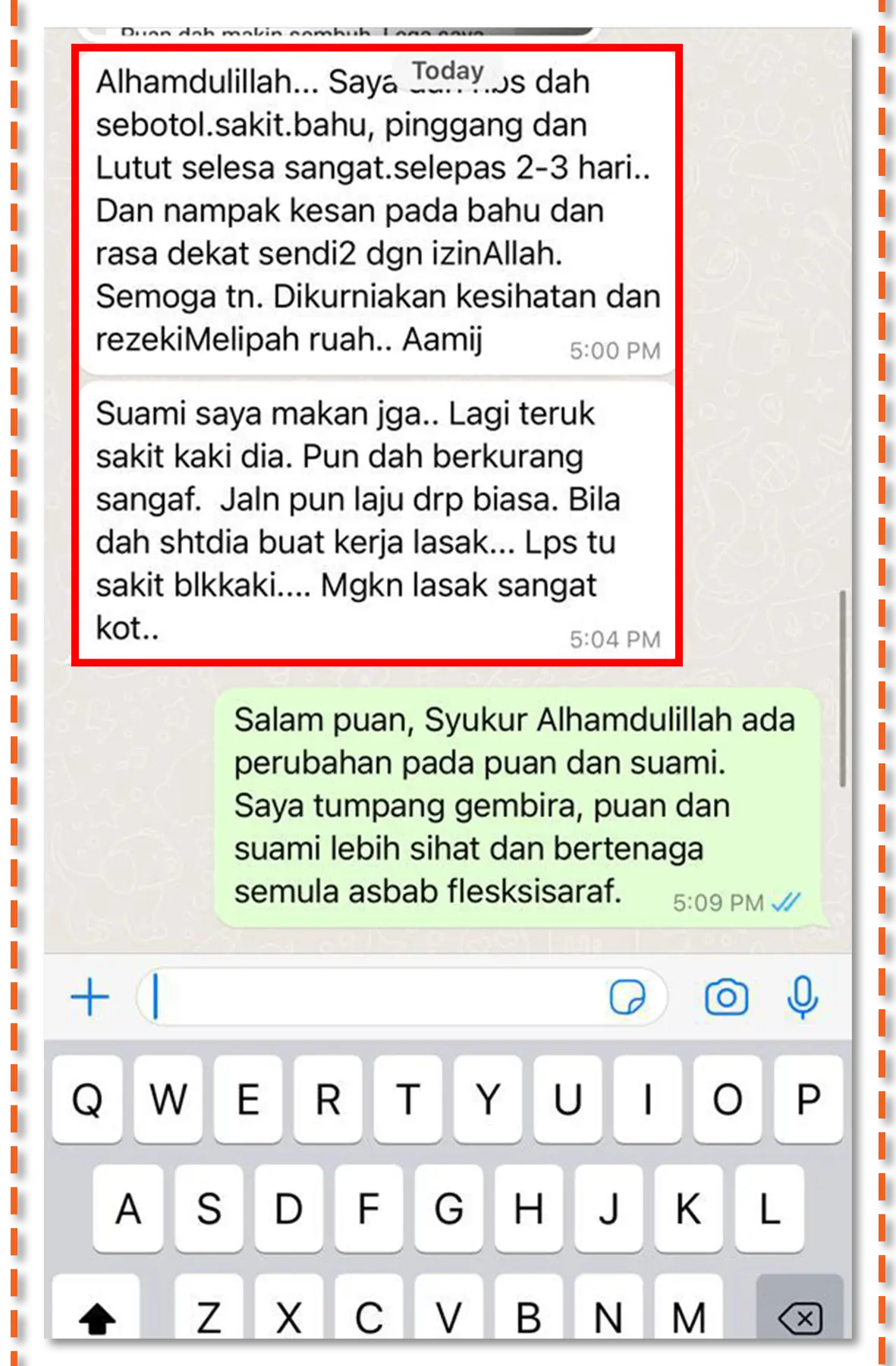 Alhamdulillah kebas tangan & kaki, sakit urat dan sakit lutut masa solat lega lepas amalkan Fleksisaraf