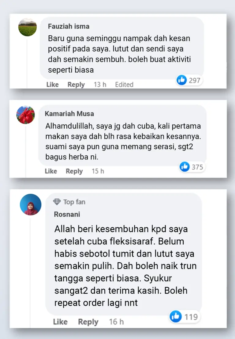 Disclaimer: Testimonials found at https://brfleksisaraf.on-linne.com/ and/or from Herba FleksiSaraf are unverified results that have been forwarded to us by users of the product. The results may vary for each individual and are not intended to represent or guarantee that anyone will achieve the same or similar results within a specific period of time.